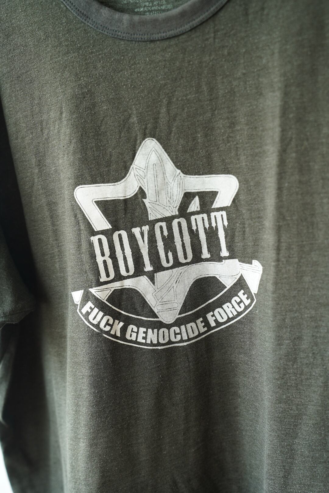 DANNY JINの代表曲「BOYCOTT」で用いられた、血塗りのイスラエル軍エムブレムを再現したデザイン。