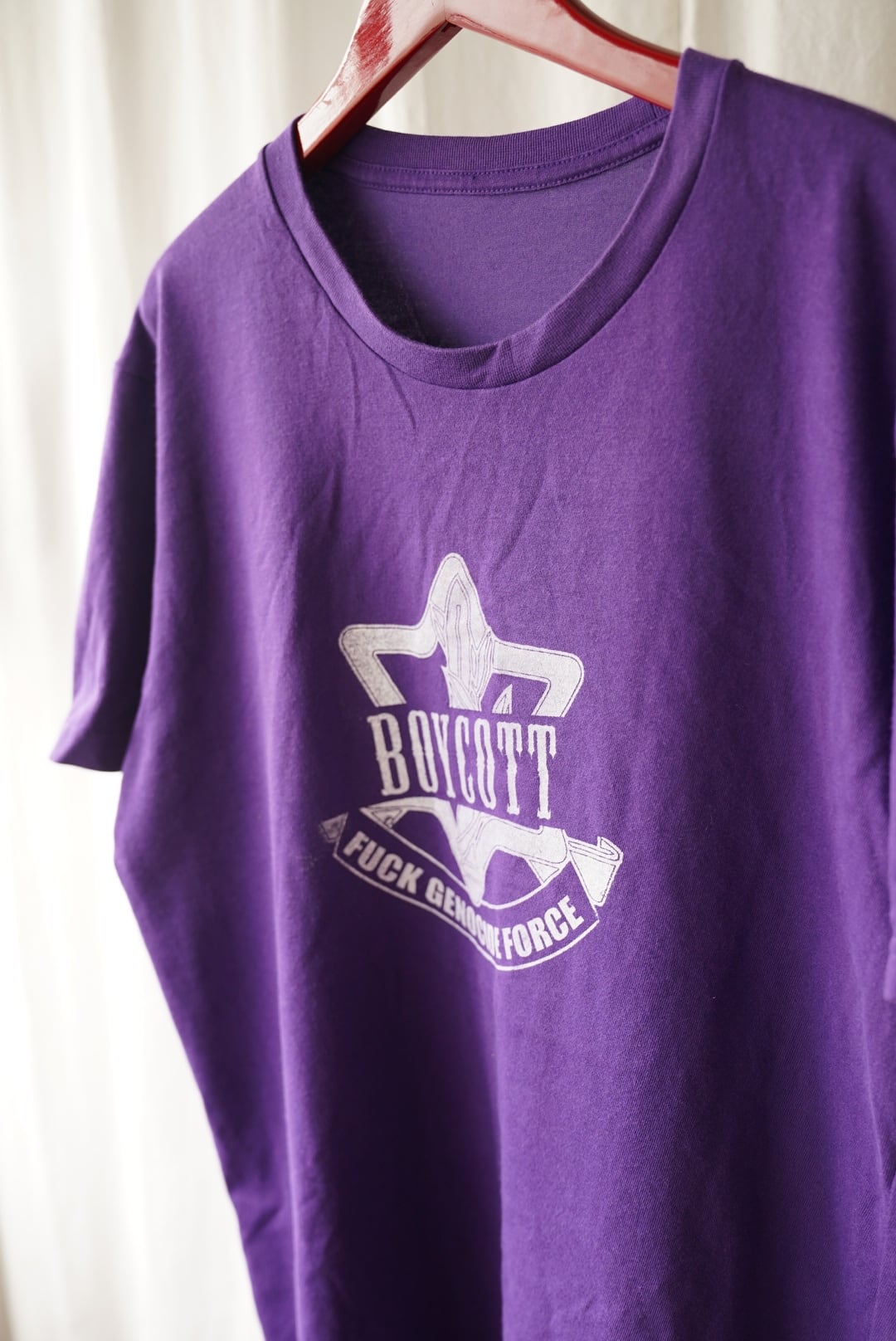 DANNY JINの代表曲「BOYCOTT」で用いられた、血塗りのイスラエル軍エムブレムを再現したデザイン。