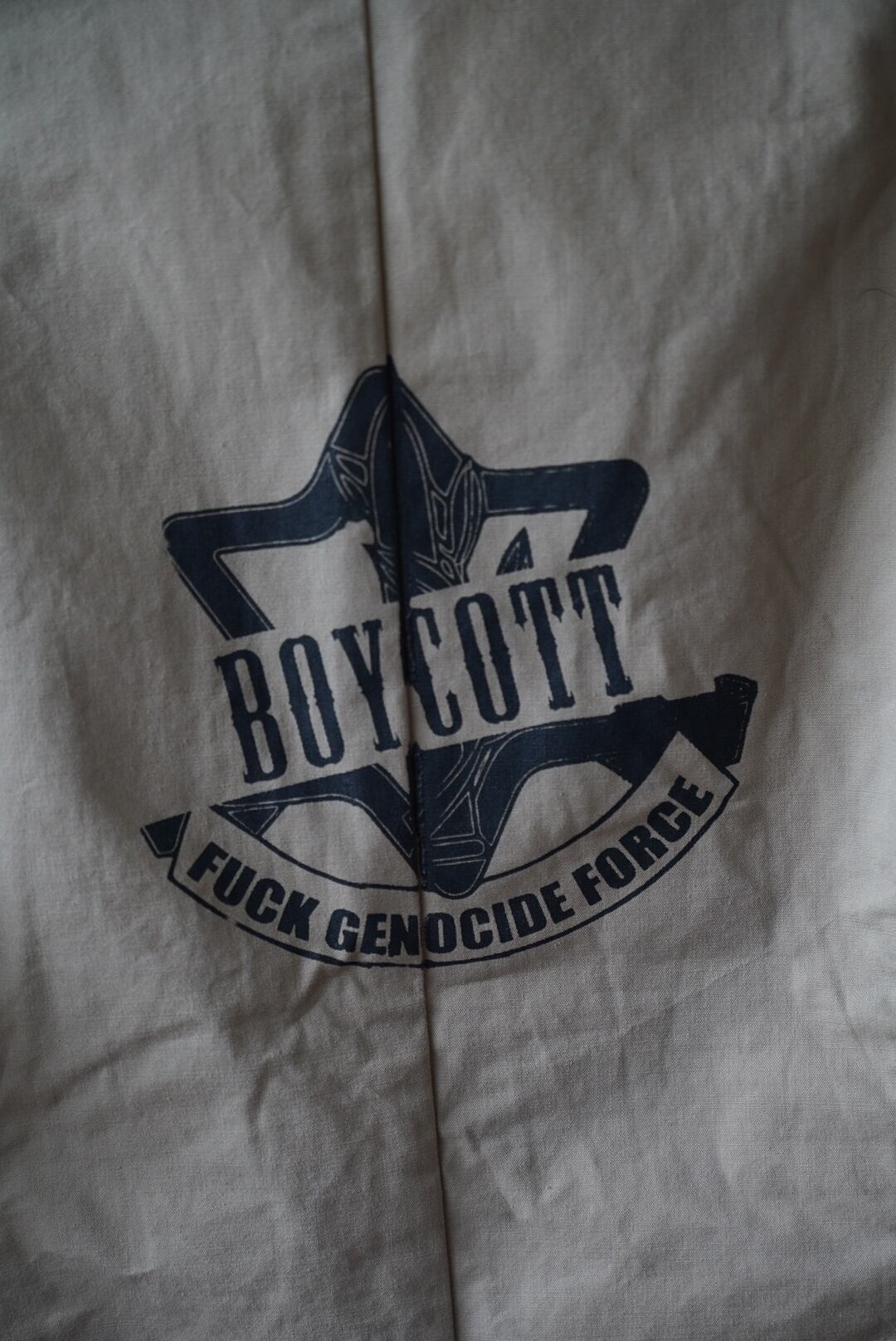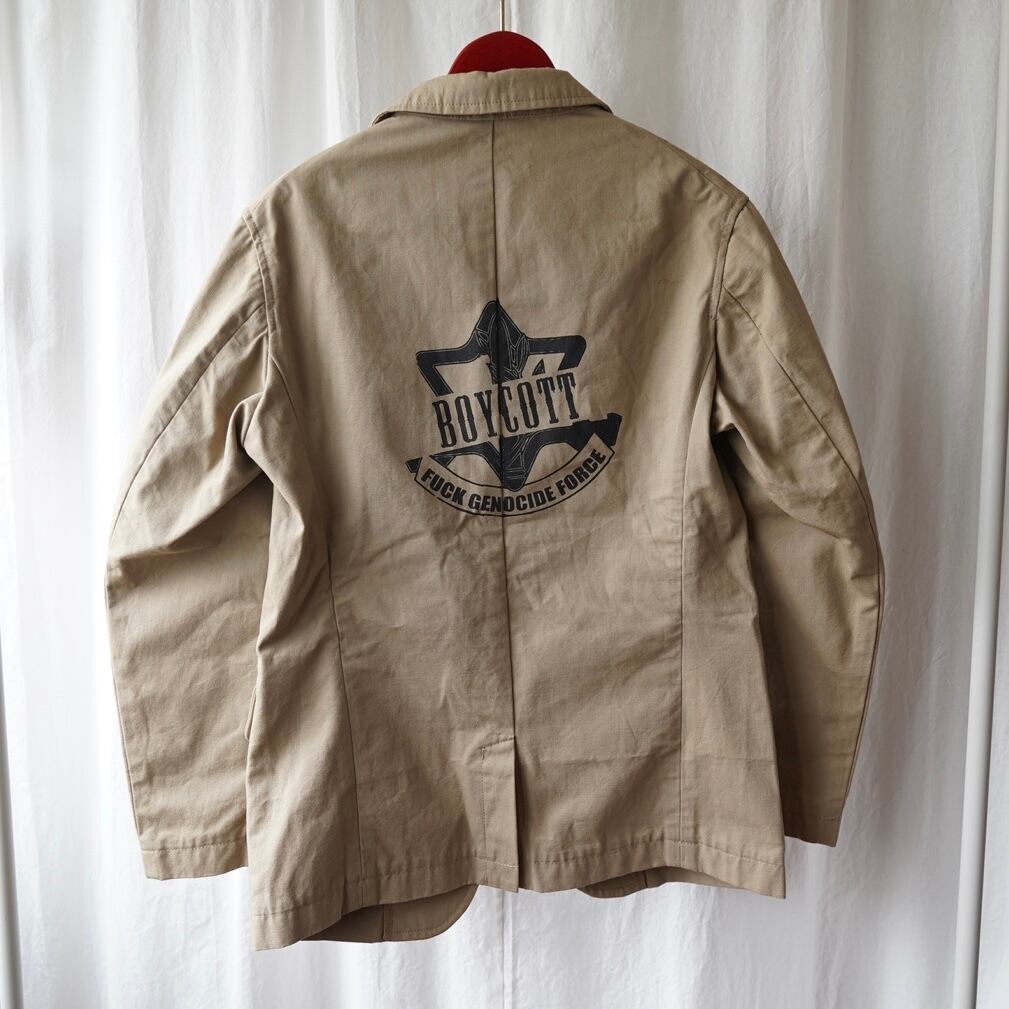 DANNY JINの代表曲「BOYCOTT」で用いられた、血塗りのイスラエル軍エムブレムを再現したデザイン。