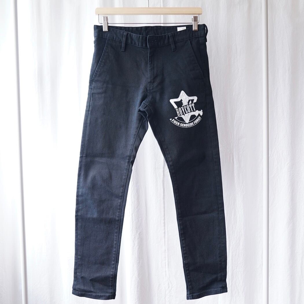 DANNY JINの代表曲「BOYCOTT」で用いられた、血塗りのイスラエル軍エムブレムを再現したデザイン。